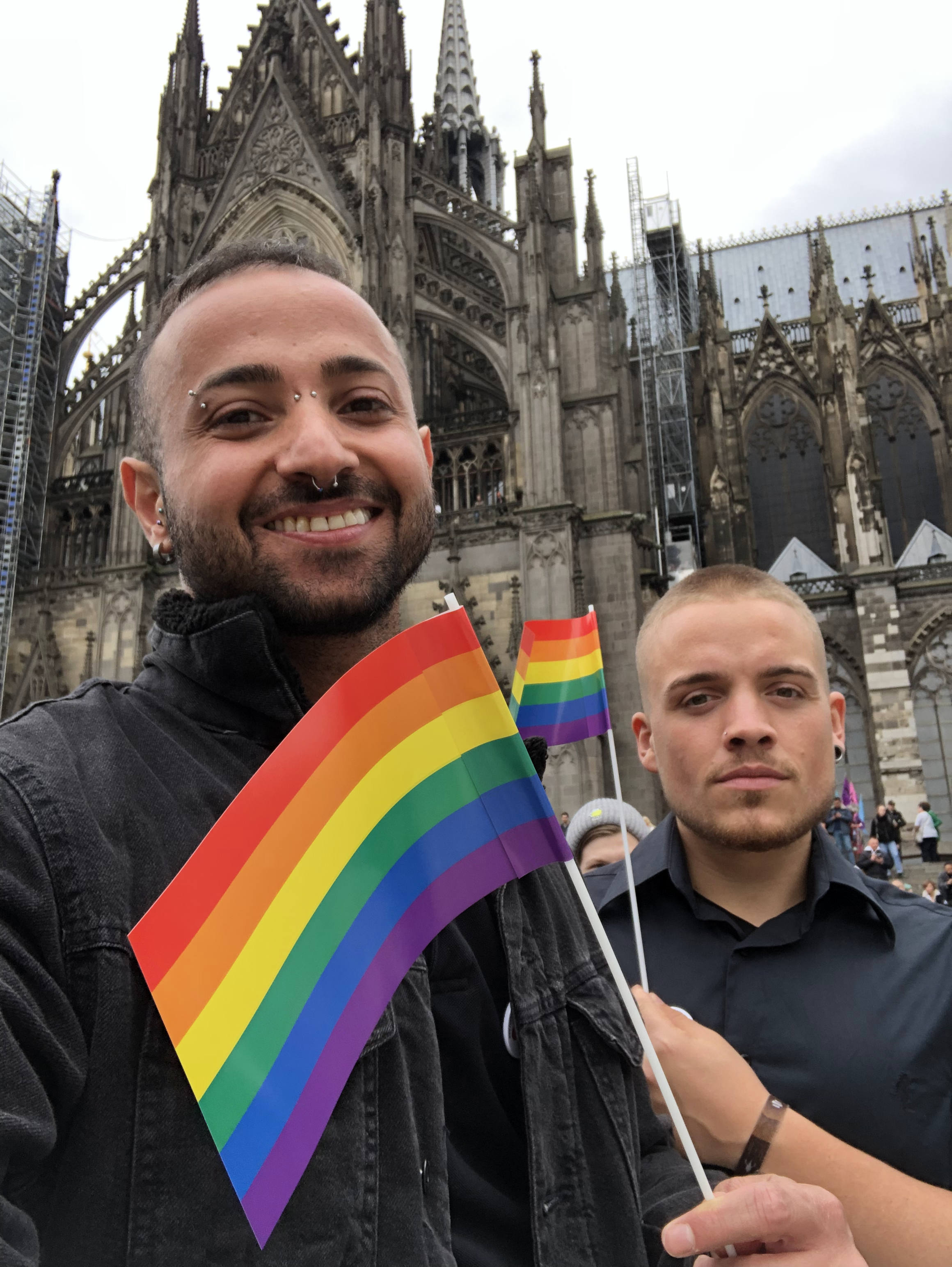 Auch beruflich sind beide ziemlich kreativ, aber auch lösungsorientiert: Benjamin macht eine Ausbildung zum Fachinformatiker für Anwendungsentwicklung bei einer großen DIY-Baumarktkette: Dort baut er Web Tools, arbeitet am Online Shop und darf sich die interne Infrastruktur genauer ansehen. Nebenbei erstellt er auch noch Layouts für Print, Soziale Medien und beschäftigt sich mit Videoschnitt. Diese Fähigkeiten bringt er auch bei Ibrahims Engagement mit ein, denn dieser ist seit 2017 als Sozialarbeiter beim Rubicon e.V., einer Beratungsstelle für LGBTI*, mit den Schwerpunkten Anti-Gewalt, HIV-Prävention und Asylberatung für LGBTI*-Flüchtlinge tätig. Obendrein ist er Vorstandsmitglied von Rainbow Refugees Cologne – Support Group e.V.