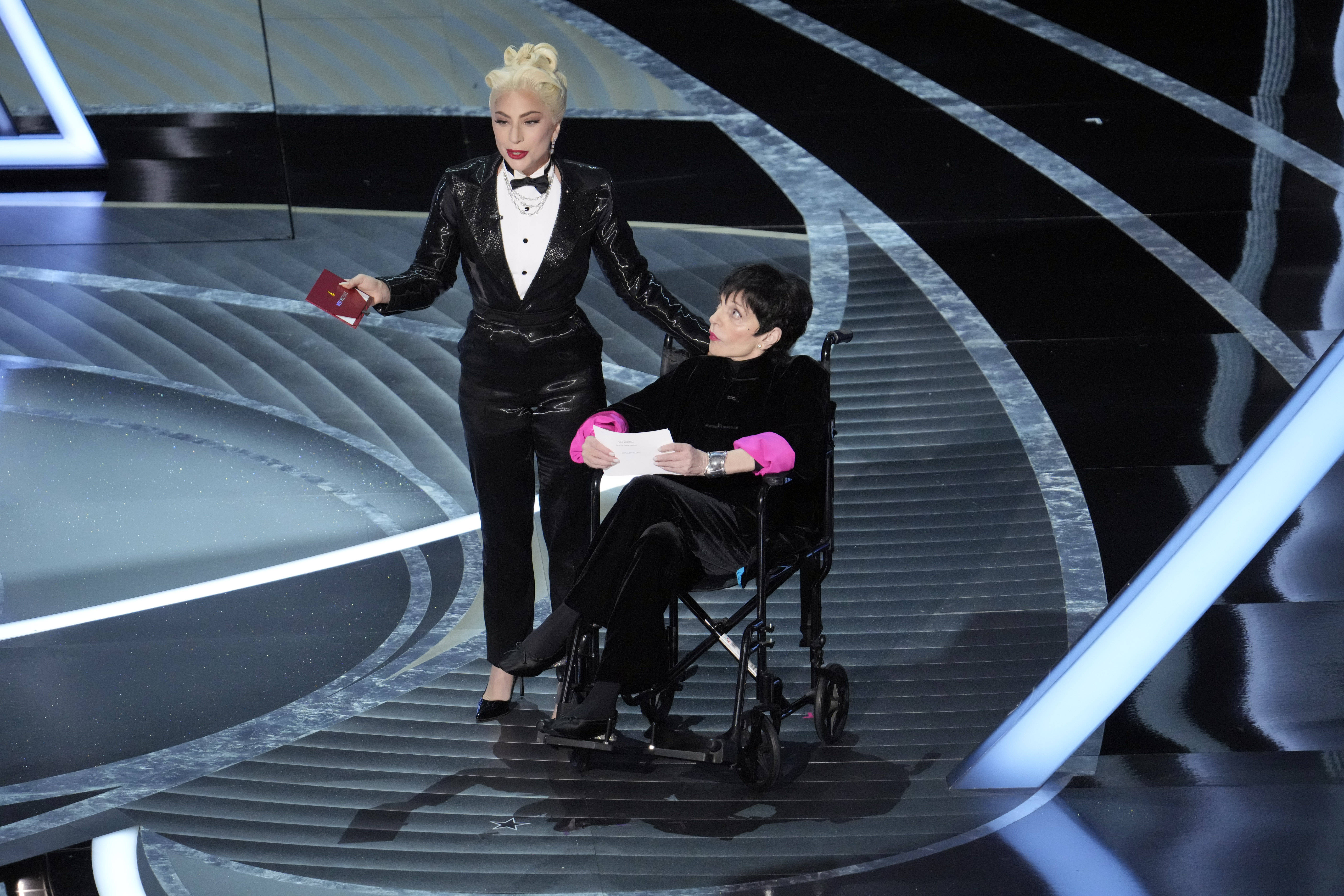 Die Entertainerin wirft dabei auch Lady Gaga vor, Druck ausgeübt zu haben: „Meine Co-Moderatorin bestand darauf, nicht mit mir auf die Bühne zu gehen, wenn ich nicht im Rollstuhl säße.“ Über die Demütigung sagte Minnelli: „Ich war am Boden zerstört. Ich saß viel tiefer als im Regiestuhl. Ich konnte den Teleprompter über mir nicht mehr richtig lesen.“ Als sie über einzelne Worte stolperte, habe Gaga die Situation sofort für sich genutzt: „Gaga, die neben mir stand, zögerte nicht eine Sekunde, um vor aller Welt die gütige Heldin zu spielen. ‚Ich helfe dir‘, sagte sie und beugte sich zu mir herunter.“