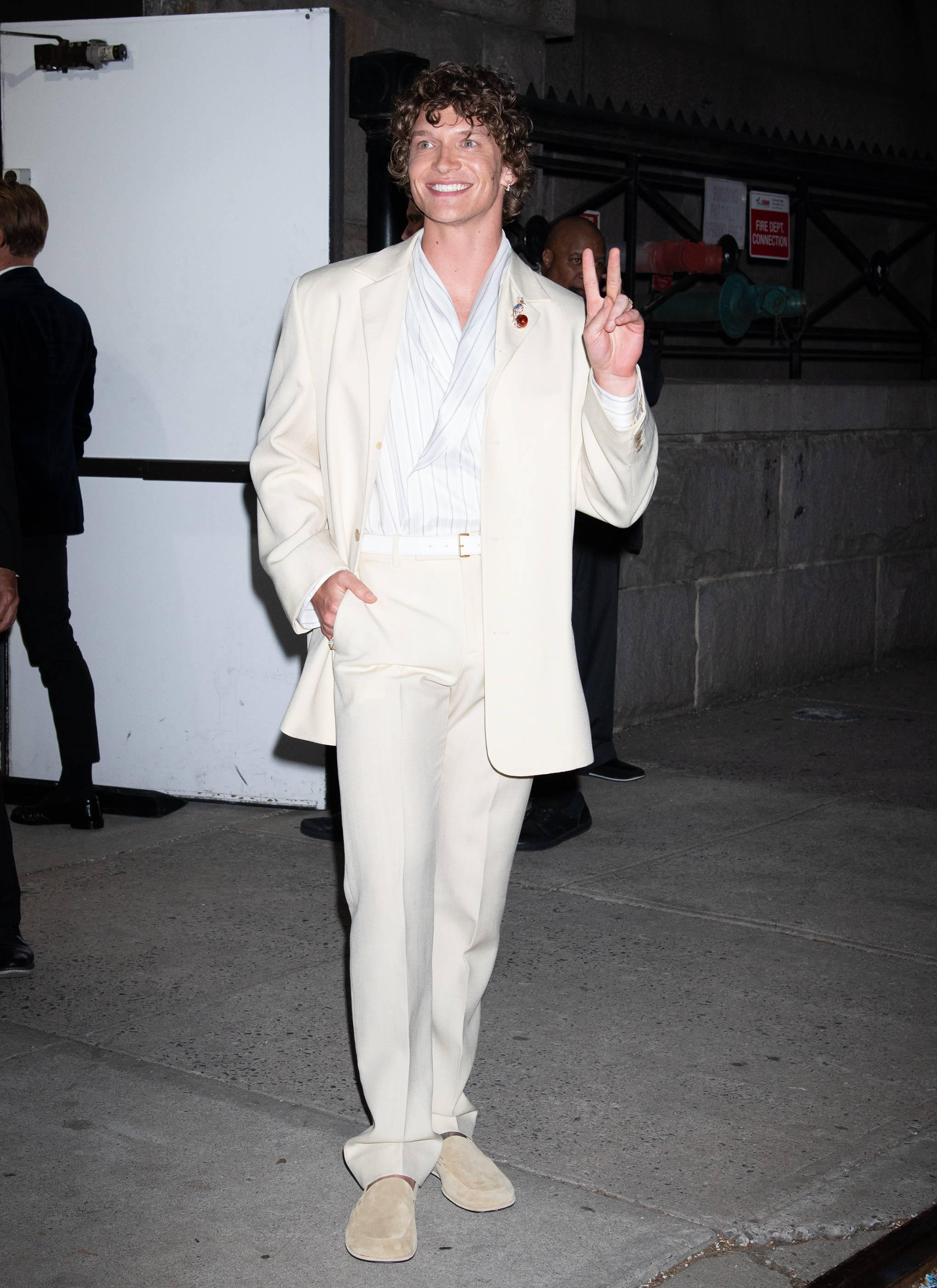 Als Markenbotschafter hat sich Tiffany damit den derzeit heißesten Schauspieler Hollywoods ausgesucht, nachdem die schwule Eishockey-Serie „Heated Rivalry“ weltweit begeisterte. Seinen Auftritt aus der Kampagne übertrug Storrie auch auf den roten Teppich bei der Präsentationsveranstaltung vor wenigen Tagen in New York City. Die Schau fand in der Park Avenue Armory statt und diente sowohl als Feier als auch als Bühne für die neue Kollektion. Der Model-Auftritt fiel durch ein bewusst zurückhaltendes Styling auf: Ein cremefarbener Anzug mit weiter Silhouette und hoch geschnittener Hose wurde mit einem tief ausgeschnittenen Wickelhemd kombiniert. Der reduzierte Look ließ der auffälligen Brosche den Vortritt und stellte sie klar in den Mittelpunkt.