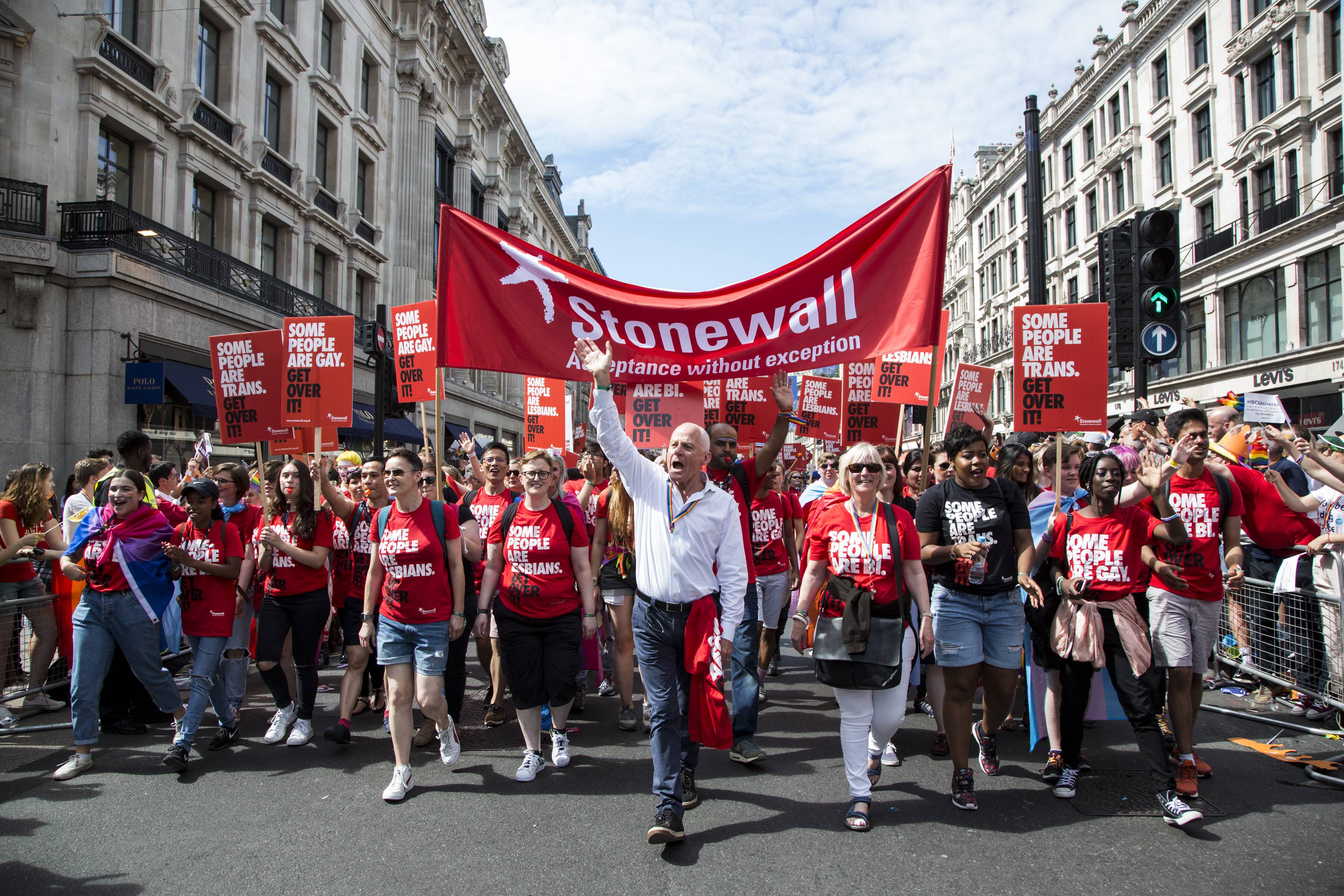 Stonewall ist einer der ältesten und der größte britische LGBTIQ+-Verein, gegründet 1989, unter anderem von Schauspieler Sir Ian McKellen. Die Organisation, benannt nach den Stonewall-Unruhen in New York 1969, setzte sich ursprünglich gegen das Gesetz §28 ein, das Schulen und lokalen Behörden in Großbritannien untersagte, „Homosexualität zu fördern“. Seitdem hat sich Stonewall für eine Vielzahl von Gesetzesänderungen stark gemacht, darunter die Einführung der gleichgeschlechtlichen Ehe und die Anerkennung der sexuellen Orientierung sowie der Geschlechtsidentität als geschützte Merkmale im Gleichstellungsgesetz von 2010. In den letzten Jahren fokussierte sich der Verein immer stärker auf den Kampf für trans* und queere Rechte.