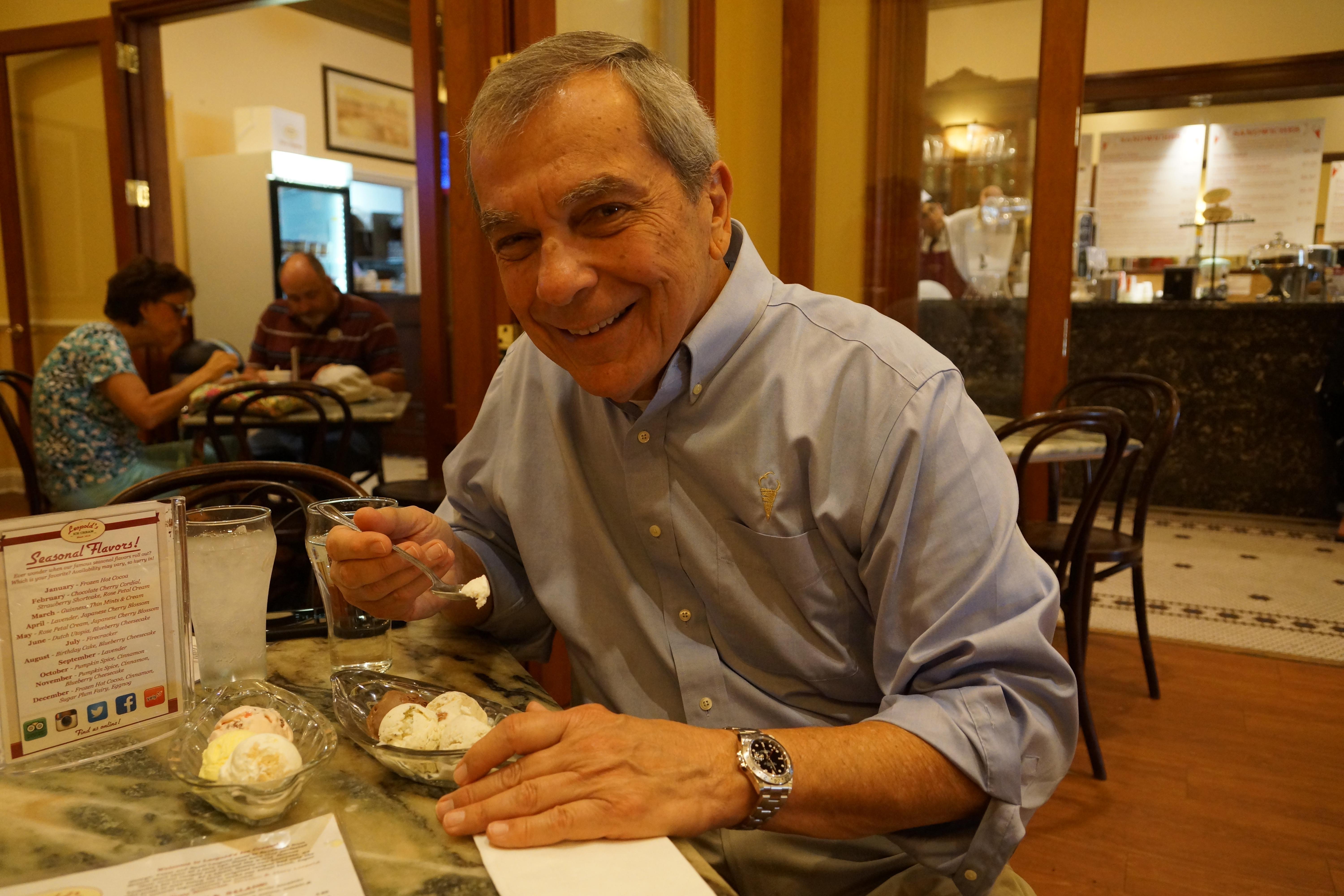 Das Tempo der Großstadt bin ich zwar gewohnt, doch in amerikanischen Metropolen kommen noch die starken Eindrücke hinzu. Ich freue mich also auf einen Ort, von dem ich schon viel gehört habe. Ich nehme in den frühen Morgenstunden die Metro-Bahn von Atlanta, genannt MARTA. Sehr praktisch. Geht bis zum Flughafen. Dort mit dem Flieger nach Savannah. Dauert etwa eine Stunde. Das Taxi befördert mich in 30 Minuten dann in das historische Zentrum der Stadt. Denn Savannah hat zwei Gesichter. Es ist großer Hafen und schnuckeliges Refugium für ermattete Städter zugleich. Auch in den USA ist Savannah ziemlich einmalig. Eine Mischung aus Romantik und Geheimnis. Verwunschene Villen und wuchernde Vegetation. Der Ort also für spannende Geschichten. Das hat auch Hollywood inspiriert. Hier wurden Forrest Gump und viele andere Kassenschlager gedreht. Und ein großer Filmproduzent verkauft hier Eis. Aber dazu später mehr. Ich beziehe mein Zimmer im B. Historic Hotel, von hier ist es nicht weit zum Zentrum. Nach einer ersten Orientierung mit der Trolley Tour treffe ich Erica und Summer im Old Pink House. Der Ort atmet Geschichte. Hier haben schon die Honoratioren früherer Tage trefflich gespeist. Die Küste ist nicht weit, also steht Seafood ganz oben auf der Speisekarte. Und BLT-Salat. Das ist eine typische Vorspeise aus Bacon, Salat und Tomaten, dazu würziges Dressing. Danach erkunde ich die umliegende Gegend mit seinen beschaulichen kleinen Parks, den knuffigen Cafés und Vintage-Shops. Alles sehr relaxt und pittoresk. Am Nachmittag das Highlight des Tages: Ich treffe Stratton Leopold. Der Filmproduzent ist in Hollywood eine Legende, hat mit den großen Regisseuren unserer Tage gearbeitet. Seit über 40 Jahren im Filmbusiness, hat der sympathische Gentleman mit griechischen Wurzeln es sich nicht nehmen lassen, das Eis-Geschäft seines Vaters ebenfalls weiter zu betreiben. So pendelt Stratton zwischen Beverly Hills und Savannah, und widmet sich auch Leopold's Ice Cream mit viel Leidenschaft. Savannah ist tatsächlich in Sachen Kulinarik ein echter Geheimtipp. Neu und schon sehr beliebt ist das Atlantic Restaurant. Hier treffe ich Dusty, der aktiv in der LGBT-Szene von Savannah ist. Er sieht blendend aus, versprüht Witz und Charme. Dusty schwärmt von der einzigartigen Atmosphäre dieser Stadt, und das kann ich sehr gut nachvollziehen.