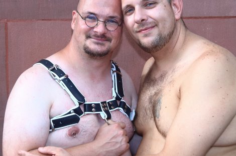 Dieter: Ich bin auch 35 Jahre alt, wiege allerdings 10 Kilos mehr als Martin; also 110 Kilo. Auch ich brachte schon immer mehr auf die Waage, habe aber auch nie ein Mobbing erlebt. Ich hatte auch schon Zeiten, wo mir die Waage 150 Kilos anzeigte; ich habe dann nur weniger gegessen. Ich fühle mich wohl in meinem Körper, bin stolz darauf und zeige das auch. Und wie Martin stehe ich auch auf echte Kerle; sonst wären wir ja wohl nicht zusammen. Witzig ist aber, dass wir uns erst vor ein paar Wochen auf dem Essener CSD kennen gelernt haben und eigentlich noch nicht feste zusammen sind, weil Martin noch anderweitig befreundet ist. Wir mögen uns aber und sind gerade in unserer Kennenlernphase.
