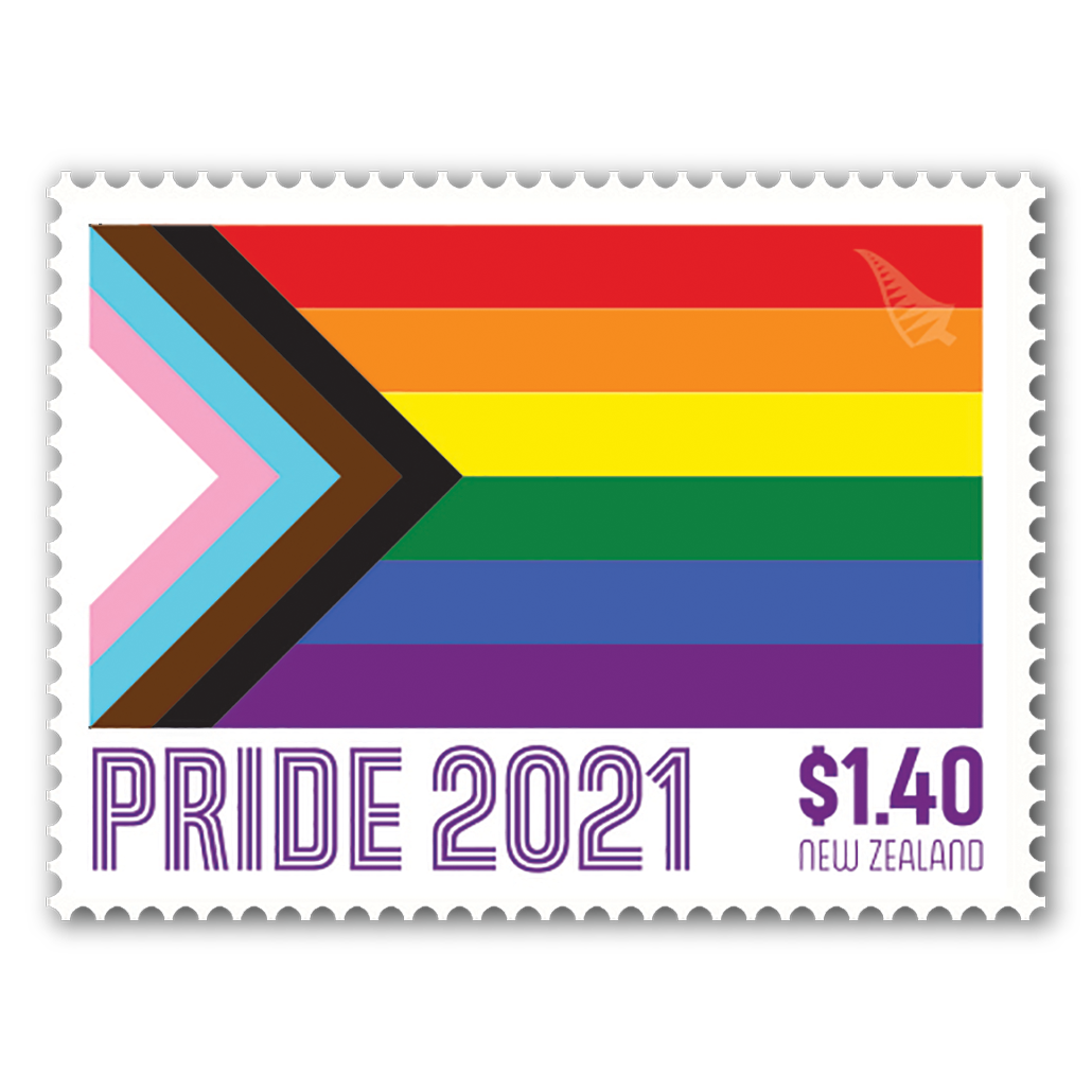 Das Design, das ausgewählt wurde, um den Pride auf der NZ Post-Briefmarke zu feiern, ist die „Progress Pride Flagge“ von Daniel Quasar. Wie der Historiker Will Hansen erklärt: "Eine Mischung zwischen originaler Regenbogen-Pride-Flagge, die erstmals 1978 von dem amerikanischen Aktivisten Gilbert Baker entworfen wurde, die Farben der Trans Pride Flagge von Monica Helms 1999 und schwarze und braune Streifen der More Color, More Pride Flagge, die auf das Konto von Amber Hikes geht, um auf Rassismus innerhalb der Queer Communities hinzuweisen."
