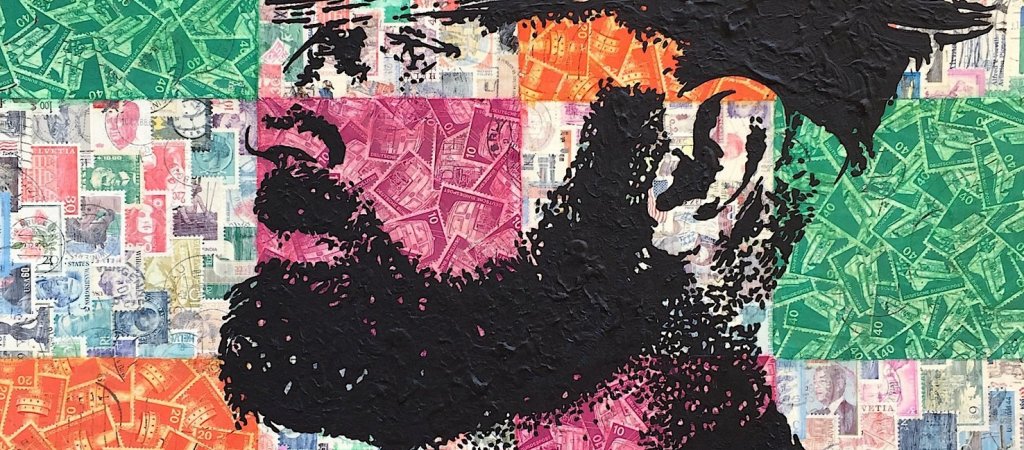 Im April 1989 begann Stefan Merkt damit, Kunstwerke aus ganz gewöhnlichen Briefmarken zu erschaffen. Mittlerweile hat er über 2.900 solcher Werke gemacht. Seine Kunstwerke werden mosaikartig mit hunderten dieser bunten Postwertzeichen zusammengefügt und übermalt. In seiner aktuellen Ausstellung im Mann-o-Meter dreht sich nun alles um den Bart. Wie man vielleicht mitbekommen hat, unterliegt auch der Bart des Mannes verschiedenen Trends. War es vor etlichen Jahren eher verpönt, so gibt es heutzutage durchaus viele interessante Vollbartträger. Merkt liefert dazu Portraits von Männern, denen er bei seinen Streifzügen im Internet oder in der Berliner Szene begegnet ist. Poppig bunt und fröhlich inszeniert lenkt er damit äußerst geschickt von den Übeln der Zeit ab.