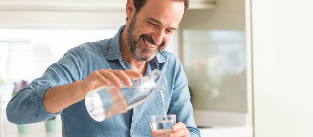 Mindestens 1,5 Liter Flüssigkeit pro Tag sollte man trinken, um unser größtes Organ zu unterstützen. Am besten geeignet ist hierfür Mineralwasser, denn es sorgt für einen ausgewogenen Elektrolythaushalt. Schon nach ca. zehn Minuten ist ein positiver Effekt spürbar, denn die Haut wird mit mehr Sauerstoff versorgt und besser durchblutet, sodass sie frischer wirkt.